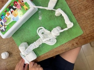 粘土を丸めたり、ちぎったり、伸ばしたりしながら、個性いっぱいの素敵な作品ができました。