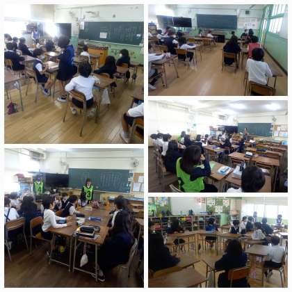 6年生の班長が、グループカラーのビブスを着用し、低学年が自分の班を意識できるよう工夫しています。