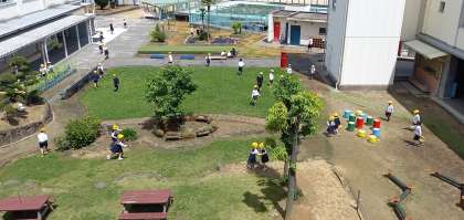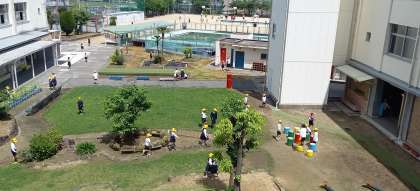 運動場と同じぐらい中庭は、子どもたちの大好きな場所です。