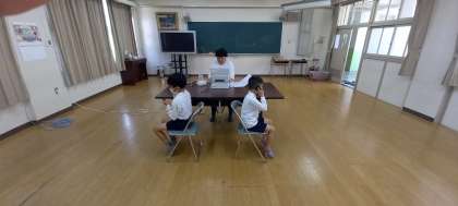 多目的室で、オージオメーターを使用して聴力検査を行っています。