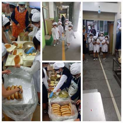 遠足が延期になった3・4年生は、家族に用意してもらったお弁当を、満面の笑顔で食べていました。