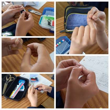 はじめてみようソーイング 公開日 2023/05/23 更新日 2023/05/23 学校生活 5年生の家庭科では、裁縫の基本を身につけます。 針と糸を使って、小物作りができるよう練習です。 いいね(0)