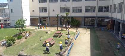 管理作業員が定期的に環境整備に努めている中庭は、うりひがっこたちのお気に入りの場所です。