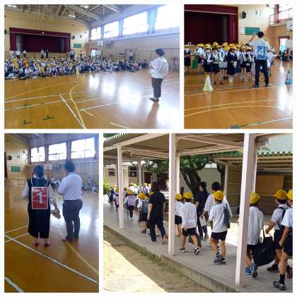 台風の接近により、大阪府全域に暴風警報が発令したと仮定して、引き渡し訓練を行いました。