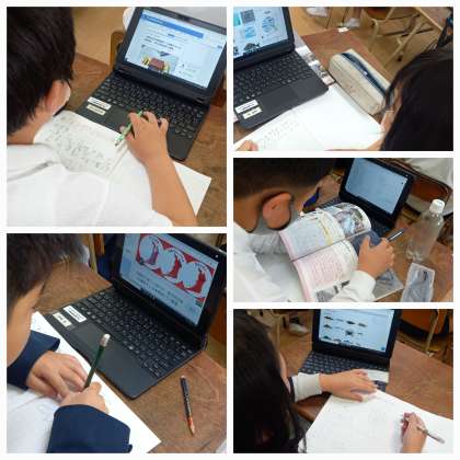 社会科で学習し、興味をもったことを調べ新聞を書きます。
