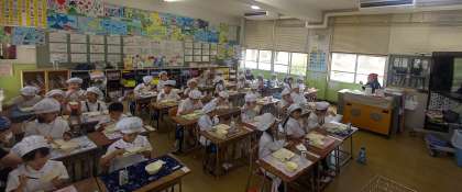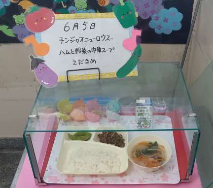 給食では、牛肉を使っているので「チンジャオニューロウスー」です。