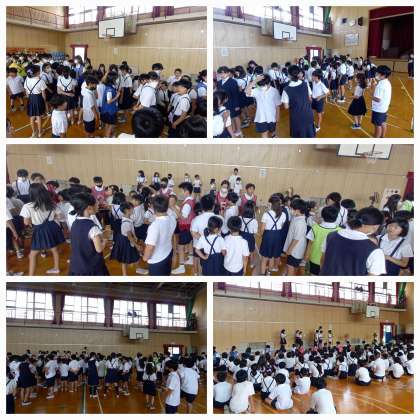 たてわり班の班長を中心に、誕生日順に並んだり、名前の五十音順に並んだりしています。