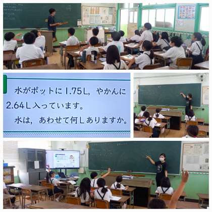 小数のしくみを調べよう 公開日 2023/06/28 更新日 2023/06/28 学校生活 今日の問題は、小数のたし算です。 1.75+2.64の計算は、0.01をもとにして考えると・・・ いいね(0)