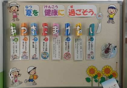保健室前に、暑さに負けないためのポイントが掲示されています。