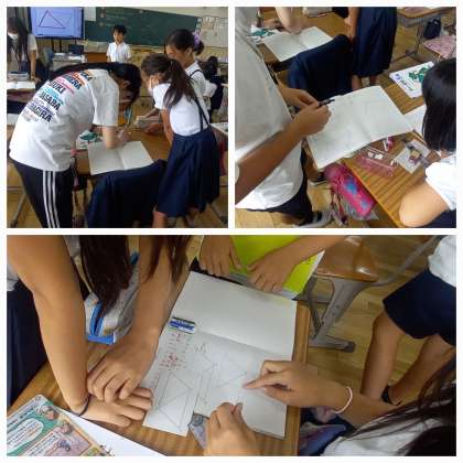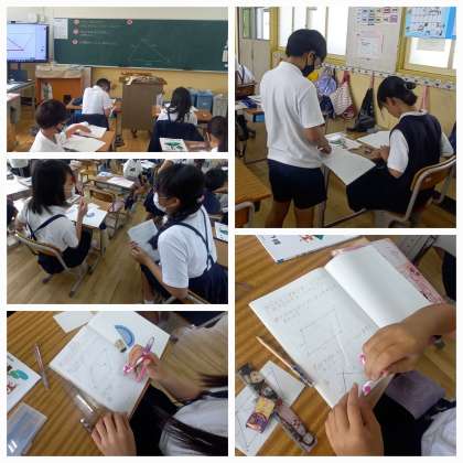 自分の考えを友達と交流し、どのようなかき方よいのか考えています。