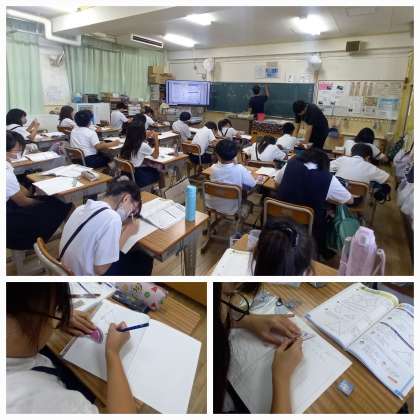 作図するには、底辺からかくとかきやすいことや、角度が決まると辺をかきやすいなど1学期に学習したことを振り返りながら進めています。