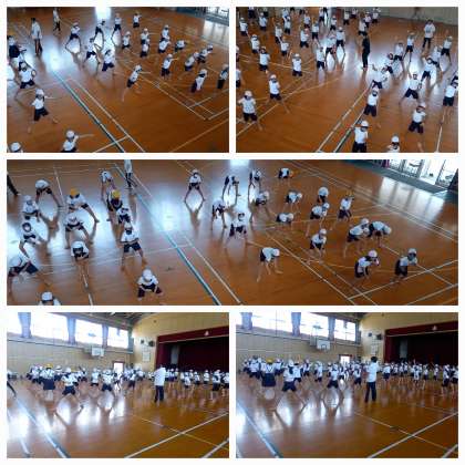 体育館では、5・6年生が団体演技『ソーラン節』の練習をしています。