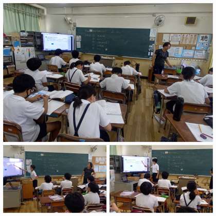 子ども達は、角の大きさを変えず、辺の長さを同じ割合で伸ばした図形が拡大図、辺の長さを同じ割合で縮めた図形を縮図ということに気づくことができました。
