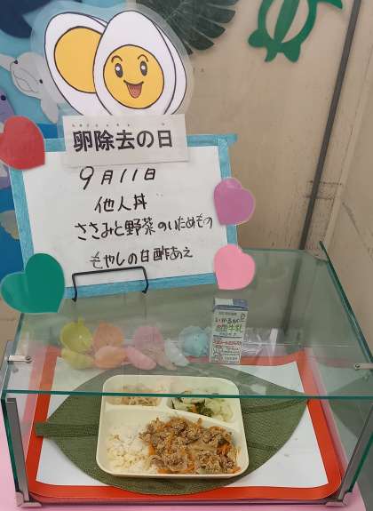 今日の献立にある「他人丼」とは、鶏肉以外の肉を玉ねぎなどと一緒に割下で煮て、鶏卵でとじて飯の上に乗せた日本発祥の丼物です。