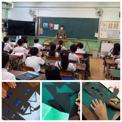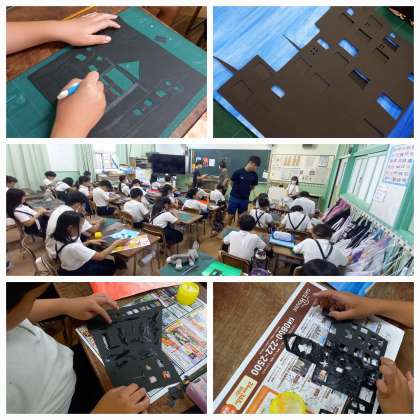 カッターナイフやはさみを使って、町並みシルエットを作りました。
