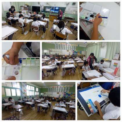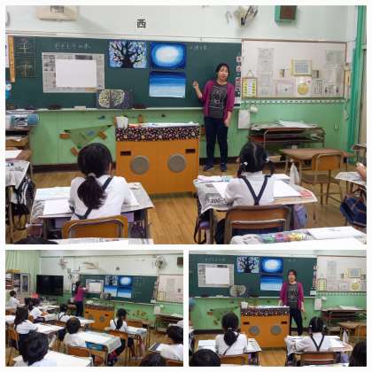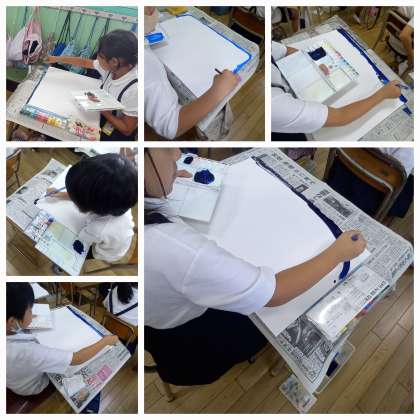 グラデーション技法で、青色、または藍色の絵の具を塗っていきます。