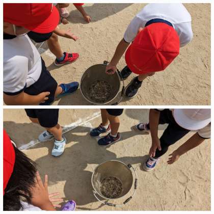 最後は、安全に運動できるよう石拾いをしました。