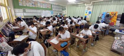 家庭科のテストに取り組んでいます。