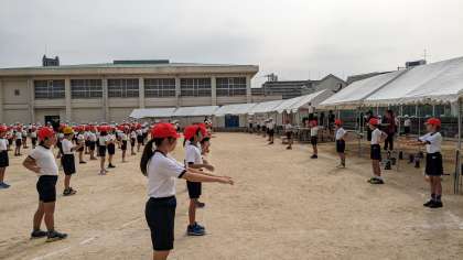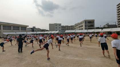 スポーツ委員会の児童が準備運動をがんばっていました。