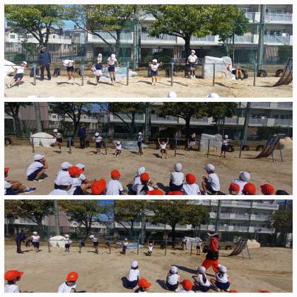 涼しくなってきたので、体育の時間に鉄棒遊びをしています。