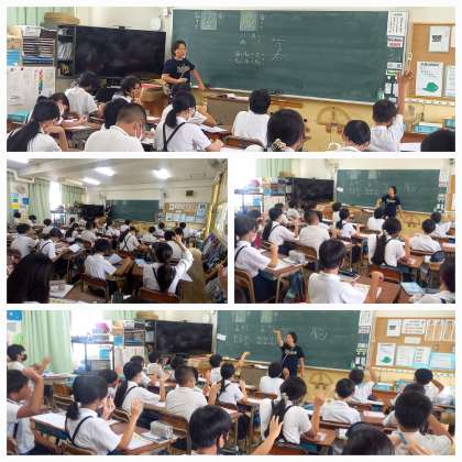 全員で、読み(音・訓)部首、画数、熟語を確認したり、筆順を覚えるために空書きをしたりしています。