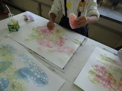 シャボンのあわでたのしく表現!・・・2年生図工授業研究
