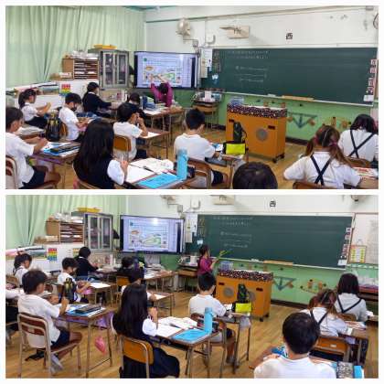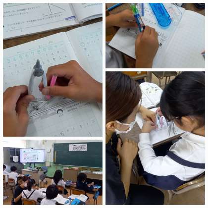 子ども達は、コンパスを使うと長さを比べられることに気づきました。