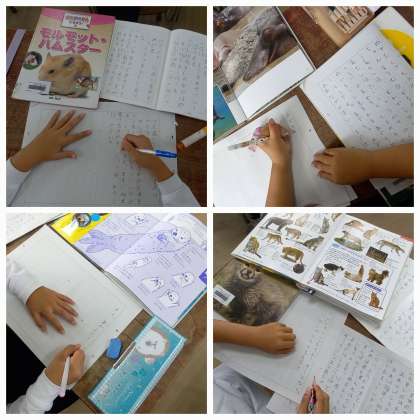 次は、自分が選んだ動物についてのひみつを調べ、わかりやすくまとめて書いています。