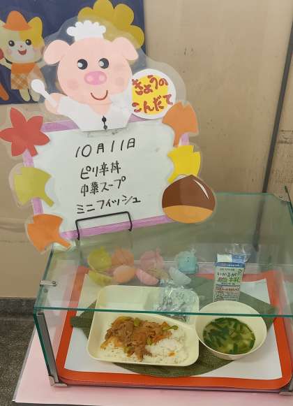 今日の献立「ピリ辛丼」は、子ども達の食欲を増進させる味です。