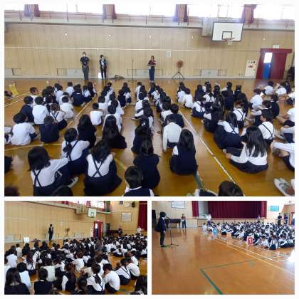 訓練後には、講堂に集まり防犯教室もしていただきました。