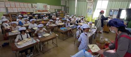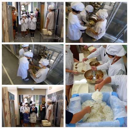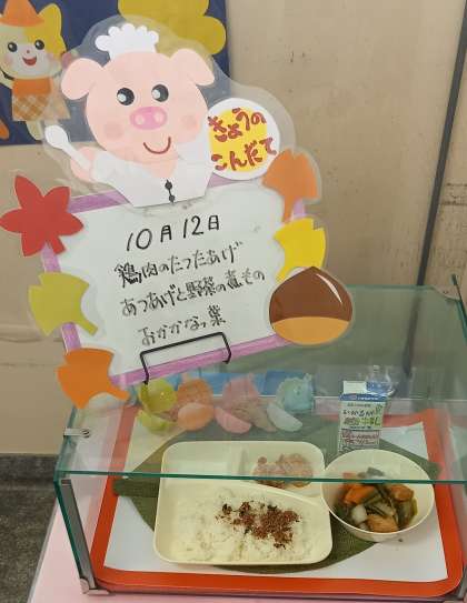 給食室にある「展示食」を見て、やった〜!と喜びの声が聞こえてきました(^-^)