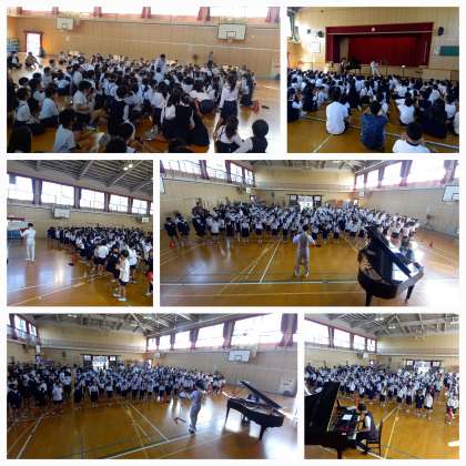 トルコ行進曲で始まったコンサートは、子ども達がお二人の演奏に合わせて歌う校歌で幕を閉じました。