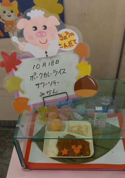 今日のポークカレーライスには、子ども達が楽しみにしている「ラッキーにんじん」が入っています(^-^)