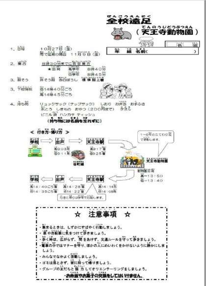 全校遠足について(10月27日(金))