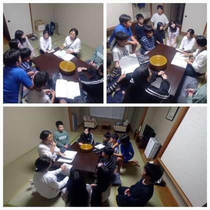 班長会議 明日も元気で楽しく過ごせるように、先生からの話を真剣に聞いています。
