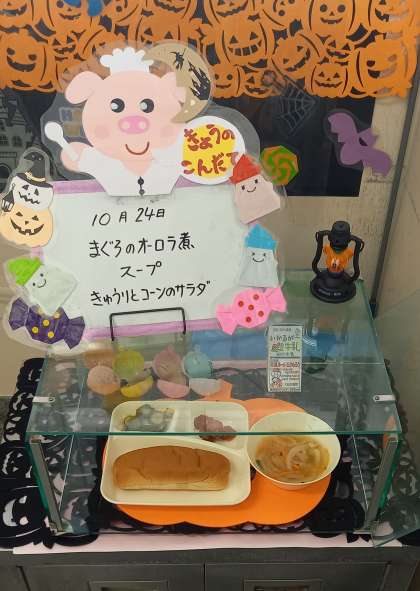 今日の献立には、子ども達に大人気の『マグロのオーロラ煮』があります。