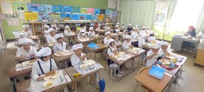 給食では、ケチャップをベースに砂糖と味噌を合わせて作っています。