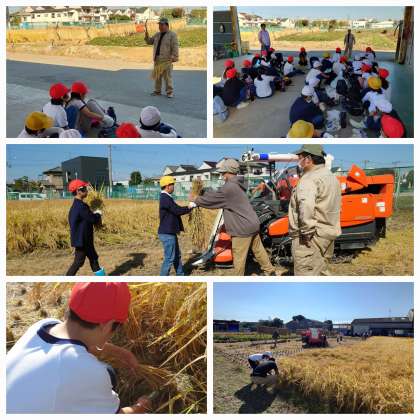 5年生が、営農センターで稲刈り体験をさせていただきました。