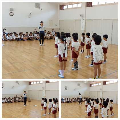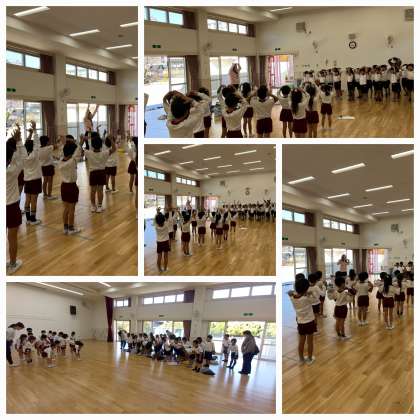 また、11月15日にある「うたごえひびけ ひらのっこ」で発表する歌を聞かせてもらったり、一緒にリズム体操をしたりしました。