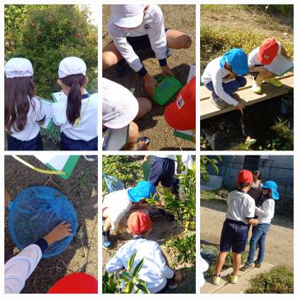 瓜破北幼稚園の園庭は、生活科の素材の宝庫です。