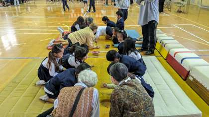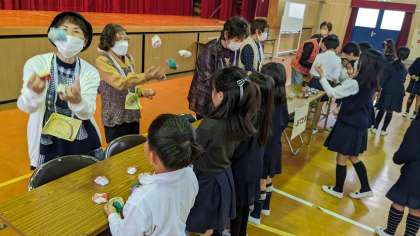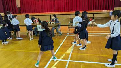 お手玉やおはじき、竹とんぼといった昔からある遊びを通じてふれあいを深めていました。