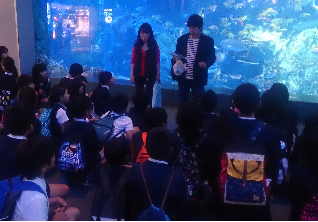 まず、鳥羽水族館に行きました。ここは、多くの生きものたちに出会える巨大水族館です。館内は12のテーマにゾーン分けされ、順路を気にすることなく自由に観覧できるのが大きな特徴です。(大阪の海遊館は、一方通行になっていて、自由に散策することが難しいようです。)ですから、子ども達は、グループで活動しながら、気に入った場所には何度も見学しているようです。
