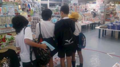 見学の後は、自由に買い物を楽しんでいます。伊勢志摩地方の名産をはじめ、水族館で飼育されている生き物をモチーフにしたお土産物もあります。修学旅行での思い出のひとつに、お土産選びをあげる子どももいます。2日目の夜、子ども達が、どんなお土産を持って帰ってくるのか・・・とっても楽しみですね。