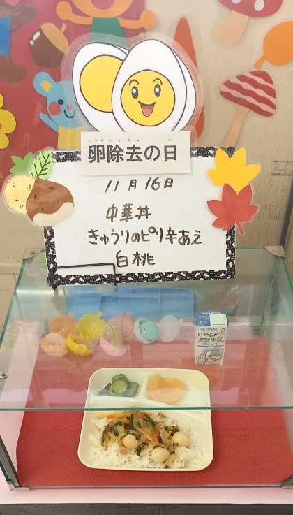 今日の献立「中華丼」は、たまごの除去食になっています。