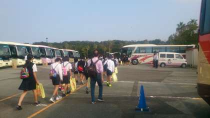スペイン村で半日活動をして、あっという間に、集合時刻となりました。2日間のすべての活動を予定通り終えて、これから、大阪に戻ります。カバンの中には、お土産やたくさんの思い出がいっぱいつまっていることでしょう。