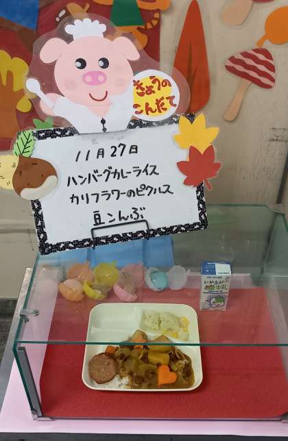 今日の献立は、初登場「ハンバーグカレーライス」です。