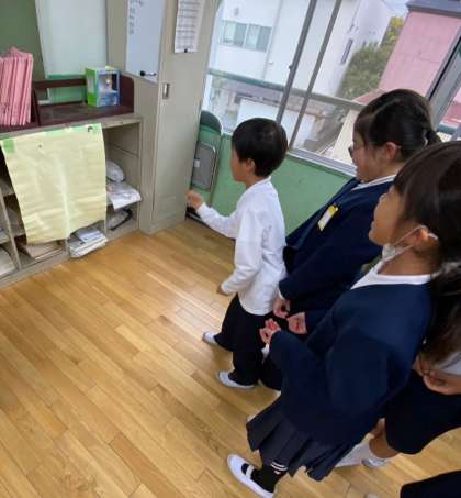 瓜破北幼稚園からいただいた「オナモミ〜ひっつき虫〜」を使って、教室で的当てをして遊んでいます(^-^)
