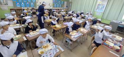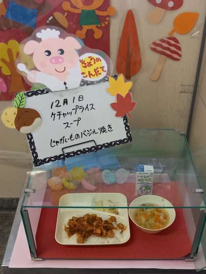子ども達の大好きなウインナー(もちろん野菜も入っています)が、ケチャップ味で作られていて、みんなニコニコ笑顔で食べていました(^-^)