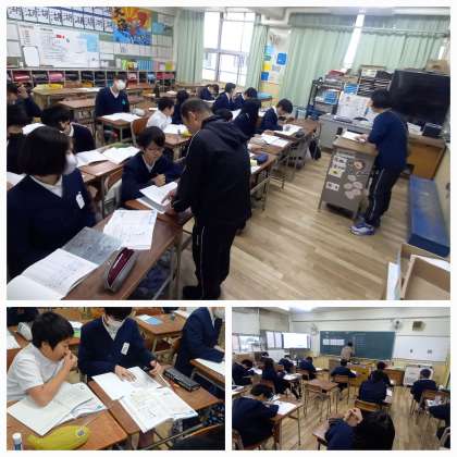 自力解決するだけでなく、友だちと教え合ったり先生にアドバイスをもらったりしながら、算数の練習問題に取り組んでいます。