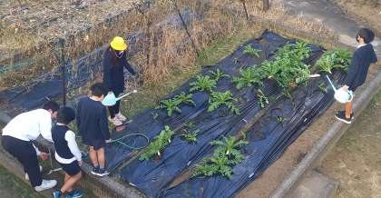 5・6年生が育てている「田辺大根」が、大きくなっています。